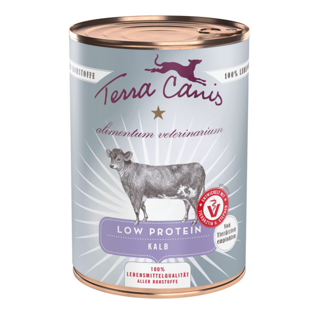 テラカニス ロープロテイン仔牛 ★全て100%ヒューマングレードクオリティ原料で作られたNRC 値(米国学術研究会議の必要栄養値)に基づく栄養バランスを用いて製造しています ★この商品はグレインフリーです。 穀物・疑似穀物を使用しておりません。 ★成犬用 腎臓・肝機能の健康維持に ・低タンパク設計(粗タンパク5.6%) ・リン・ナトリウムの調整(リン0.078%、ナトリウム0.05%) ★野菜・果物・ハーブの役割 ・非タンパク質ベースのエネルギー源:アマニ油、ジャガイモ、スーパーフードココナッツ粉を使用 ・銅を含む果物と野菜を使用しない ・樺の木、イラクサ、パセリ、キンセンカとタンポポ:腎臓と肝臓の健康維持 (主食としてご使用される場合) 使用前および6か月を超えてご使用される場合はかかりつけの獣医師にご相談することをお勧めします。そして自由に飲める水を与えてください。 この商品はEU規制2020/354の推奨事項の全てに従っています。 生産地 ドイツ サイズ ウェット 素材 仔牛の心臓(25%)、仔牛の肺(12%)、仔牛の脂肪(7%)、じゃがいも、人参(8%)、ズッキーニ、カボチャ(8%)、メロン、リンゴ、亜麻仁油、ココナッツ粉、ダンデライオン*、バーチリーフ*、パセリ*、チアシード、カレンデュラ*、イラクサ*、オイスターシェル、海藻*、ビタミン(A、D3、E、B1、B2、B12)、ビオチン、パントテン酸、葉酸、銅、マンガン、ヨウ素、亜鉛、セレン、カルシウム、リン、マグネシウム、ナトリウム、L-カルニチン 成分表 粗タンパク質/5.60% 粗脂肪/8.90% 粗繊維/0.70% 粗灰分/1.00% 水分/78.80% カロリー100g/Kcal/119.5 手作りの安心・優しさ・おいしさを手軽にご家庭で Terra Canis★Home Style cooking for dogs Terra Canisは本物のヒューマングレードを提供します。 その品質基準は「ヒューマンクオリティー」(人間用食材品質) 従来基準の1つであるヒューマングレード品質と一線を画し、 ヨーロッパで、また世界で新しい品質基準の革命の風を起こしています。 近年ドイツでヒューマングレードの代名詞といえばTerra Canis(テラカニス)です。ドイツ国内では約1300件の専門店で販売され、わずか12年でヒューマングレードフード市場の国内トップシェアクラスになったパートナーのためのご飯です。 なぜトップシェアクラスになれたか? Terra Canisが使用している原料は全て人間用食材です。それを可能にしたのはTerra Canisがドイツ ミュンヘンにある人間用食品加工会社でミュンヘン オクトーバーフェストのホストを何十年も続ける3代続く伝統的なお肉屋さん(ブッチャー)だからです。Terra Canisはお肉屋さんにしか作れないデリカテッセ(パートナーのための美味しいご飯)を調理しました。 本来人間と同品質とは、「人が食べる」品質を指します それは鮮度や品質等の安全基準をクリアし人間用の肉や加工物に適した全ての食肉処理されたものを指します。 この基準は非常に厳しい衛生規制があります。例えば肉の細菌数が限界値を超えた場合、人間の食用としては使用されず廃棄しなければなりません。そうなると、もともとは食肉であっても我々人間の食用には適しません。Terra Canisの原料はオープンで原材料や使用部位を透明化し、第3カテゴリー原料(人間が食べる部位を取った後の残りや廃棄部位)や、新鮮ではなく食用に適さない原料を使用しません。 Terra Canisは食肉の食品会社ですので人間の食用品質の原料のみを保管し製造します。そのため、原料だけでなく製造工程も人が食べる商品と同じクオリティを保っているのです。きれいなお肉がその場でミンチされ野菜もその場でカット、新鮮なまま缶に入れ減圧、加熱するシンプルな製法です。ですから製造工場は腐敗臭など全くせず、まるで家庭でクッキングしているようなごちそうが次々と生まれます。 そもそもこの製品はペットフードメーカーがペットフードの基準で製品を作ったのではなく製造後、製品ラベルを貼った時に初めてパートナーのための食事になります。 「人間の食用と同じもの(ヒューマンクオリティー)=Terra Canis ホームメイドスタイルのデリカテッセ(美味しいご飯)、ペーストタイプのサプリメント、お肉やお野菜の缶詰もご用意しました。日々の楽しいご飯として、手作りご飯の材料として、またお気に入りのフードとミックスできる商品も併せてお楽しみください。