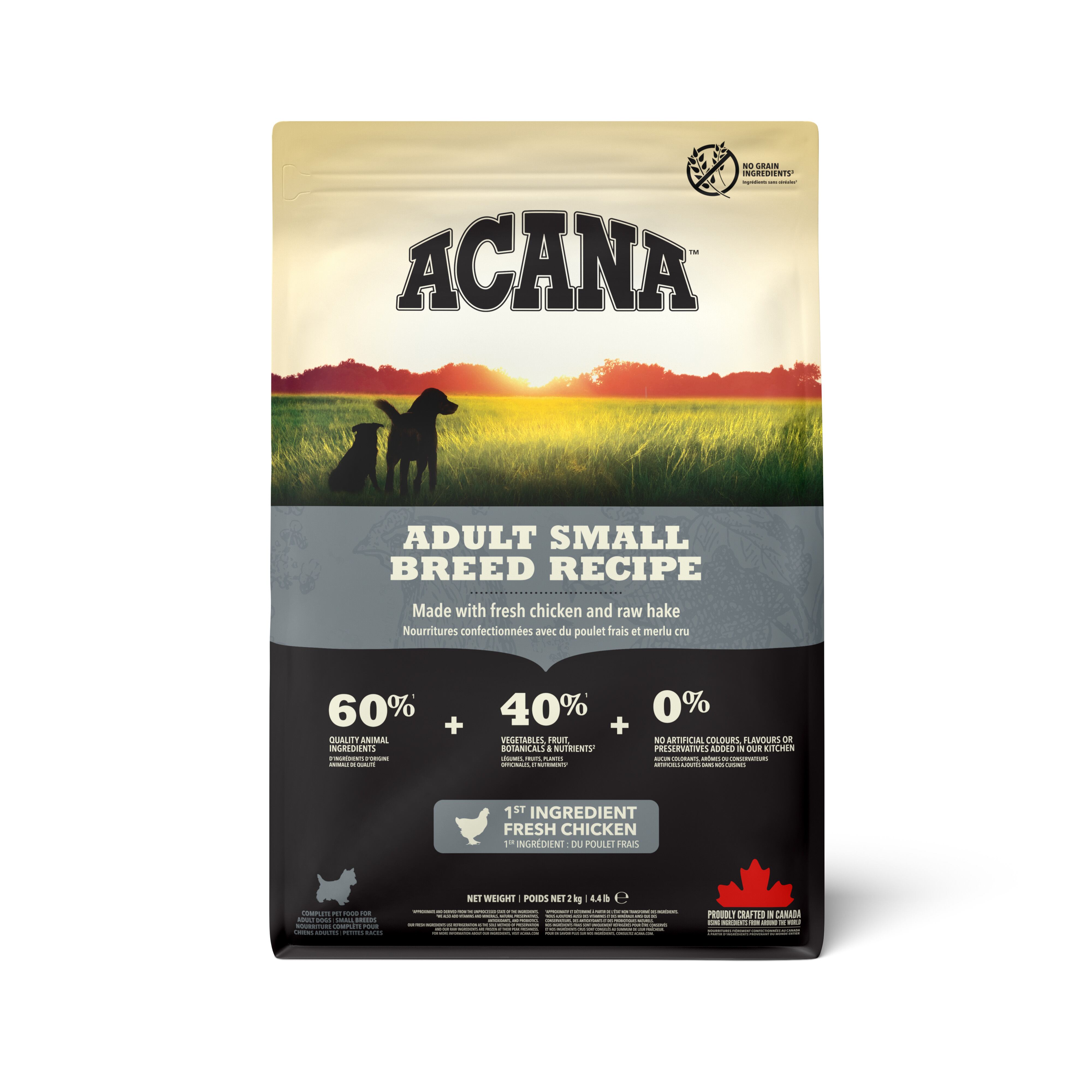 「アカナ アダルトスモールブリードレシピ」は、小型犬成犬のために特別に設計された高品質なドッグフードです。新鮮な放し飼いの鶏肉や七面鳥、豊富な天然魚を使用した動物性タンパク質がたっぷり含まれており、愛犬が必要とする栄養素をしっかりと補えます。使用する原材料の過半数以上は新鮮または生で構成されており、小型犬に最適な栄養バランスを実現しています。「アカナ アダルトスモールブリードレシピ」は、健康的で活動的な小型犬の生活を支える内容となっています!