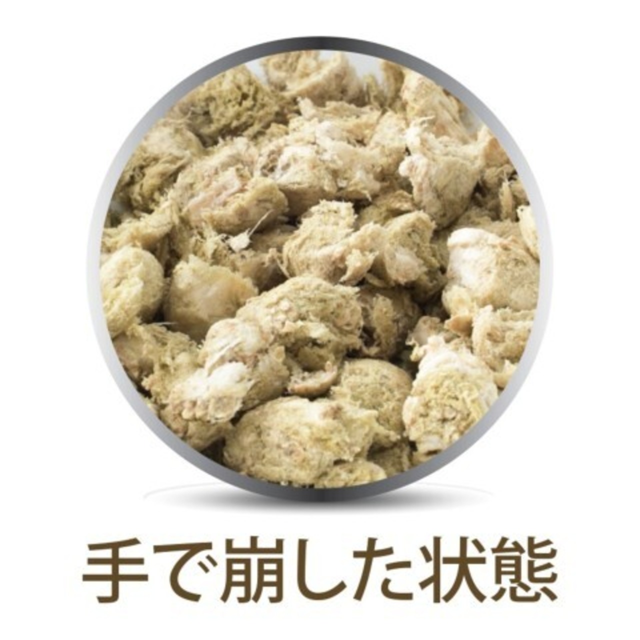 フリーズドライ製法により、栄養素が失われることなく、嗜好性も維持されています。お水を加えるだけで手軽に与えられるため、忙しい飼い主さんにもぴったりのアイテムです。