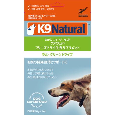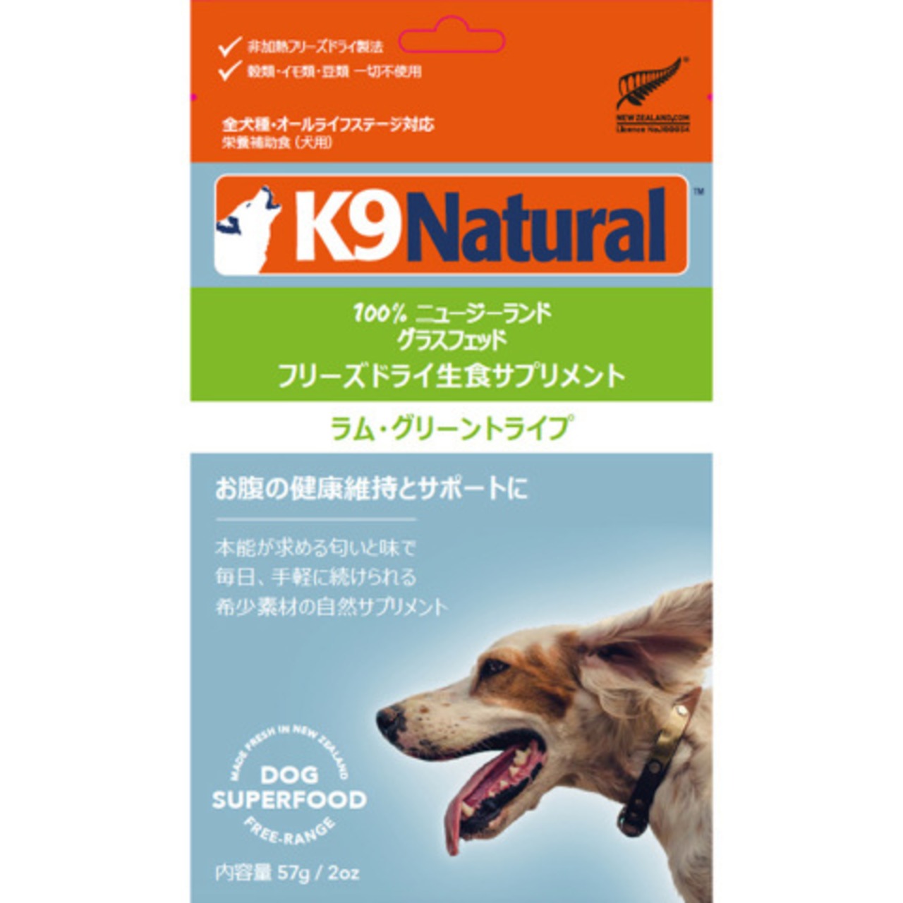 [K9ナチュラル フリーズドライ ラム・グリーントライプ]