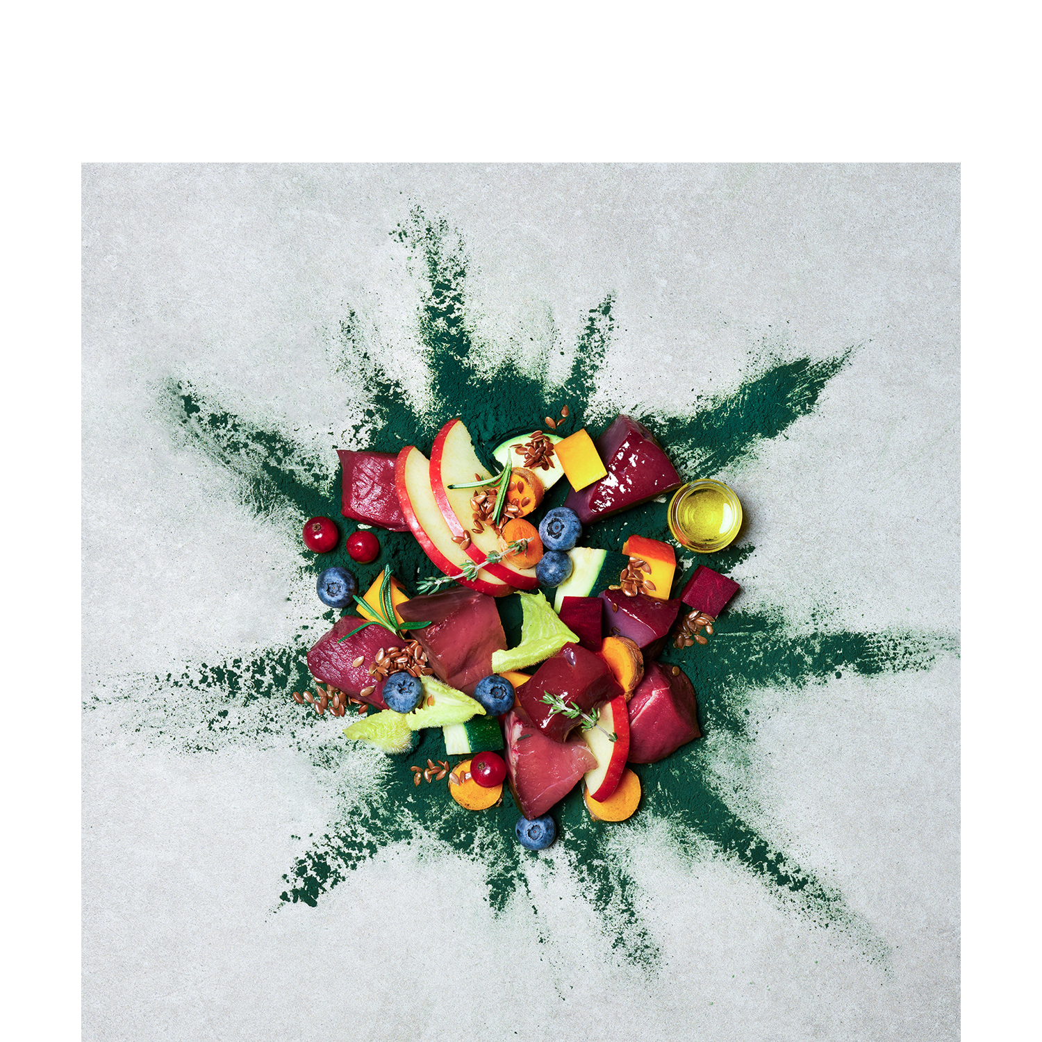 ビーフ&鹿肉は、ボリュームのあるビーフと風味豊かな鹿肉をバランスよくブレンドしています。この特別な組み合わせに、ビタミンと食物繊維が豊富なビーツとカボチャの上質な香りが加わる。甘いリンゴの風味が全体を引き締めた、お肉好きの心を躍らせるメニューです。