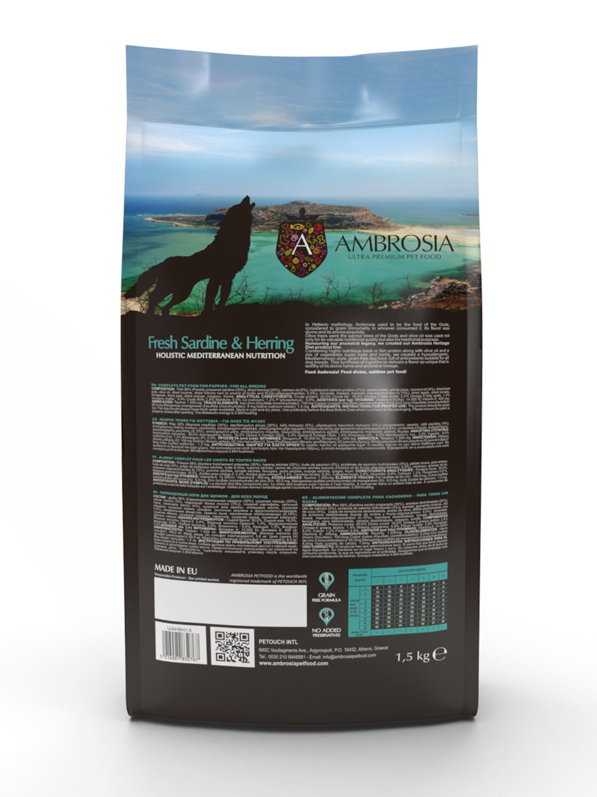 「アンブロシア」= ギリシャで古代より言い伝えられる「神々の食べ物」。その風味は神聖で、その香りは人々を虜にしていました。アンブロシアのように健康的で魅力的な美味しさが犬や猫を虜にする食べ物となることを目指して「アンブロシアペットフード」は命名されました。