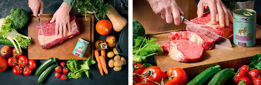 Terra Canisが使用している原料は全て人間用食材です。それを可能にしたのはTerra Canisがドイツ ミュンヘンにある人間用食品加工会社でミュンヘン オクトーバーフェストのホストを何十年も続ける3代続く伝統的なお肉屋さん(ブッチャー)だからです。Terra Canisはお肉屋さんにしか作れないデリカテッセ(パートナーのための美味しいご飯)を調理しました。