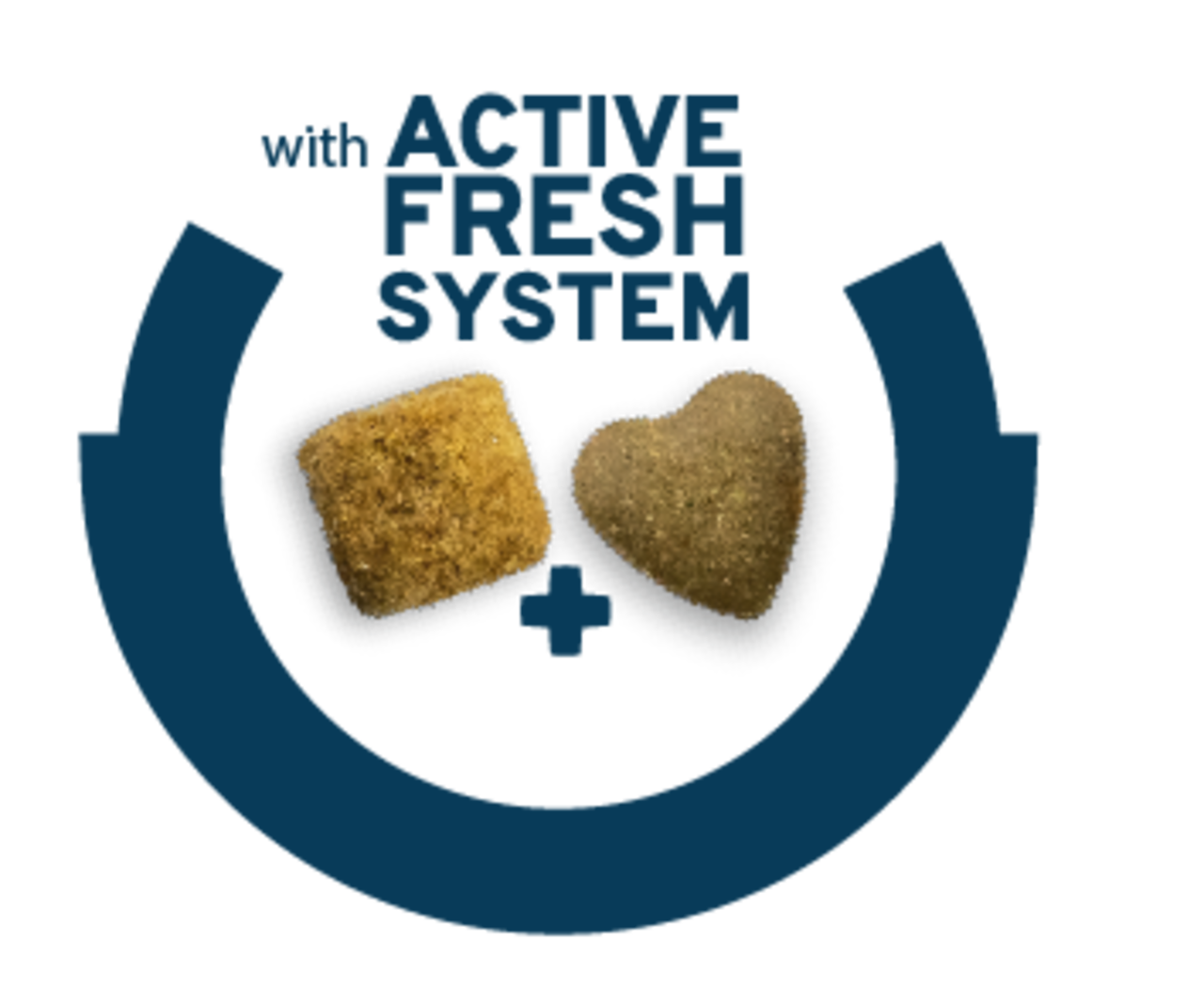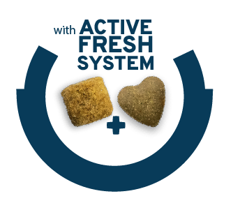 通常粒:精米・デハイドレイテッドフィッシュ(エアドライされて乾燥した魚肉)(21%)・米ぬか・【AFS粒(一袋当たり約7%):ポテトタンパク・加水分解された動物性タンパク・ローズヒップ・オオバコ(Plantago psyllium mucilage 1%)(0.054%)・マンナンオリゴ糖( MOS)(0.0011%)】・ビートパルプ・魚油( 3.5%)・トウモロコシタンパク・トウモロコシ胚芽油・加水分解された動物性タンパク・ミネラル類・マンナンオリゴ糖(MOS)(0.15%)・フラクトオリゴ糖(FOS)(0.05%)・ユッカシジゲラ・ビタミンA・ビタミンE・ビタミンB1・ビタミンB2・ビタミンB6・ビタミンB12・ビタミンC・ビタミンPP・D-パントテン酸カルシウム・葉酸・塩化コリン・DL-メチオニン・硫酸亜鉛一水和物・銅アミノ酸キレート水和物・沈降性クリノプチロライト・トコフェロール(酸化防止剤として使用)(7.6mg)・オレガノ・栗・ビターオレンジ(Citrus aurantium)・ローズマリー(Rosmarinus officinalis) (4mg)・腸内細菌叢:微生物(4b1707 Enterococcus faecium DSM 10663-NCIMB 10415 3.5x10^10 CFU)(113mg)
