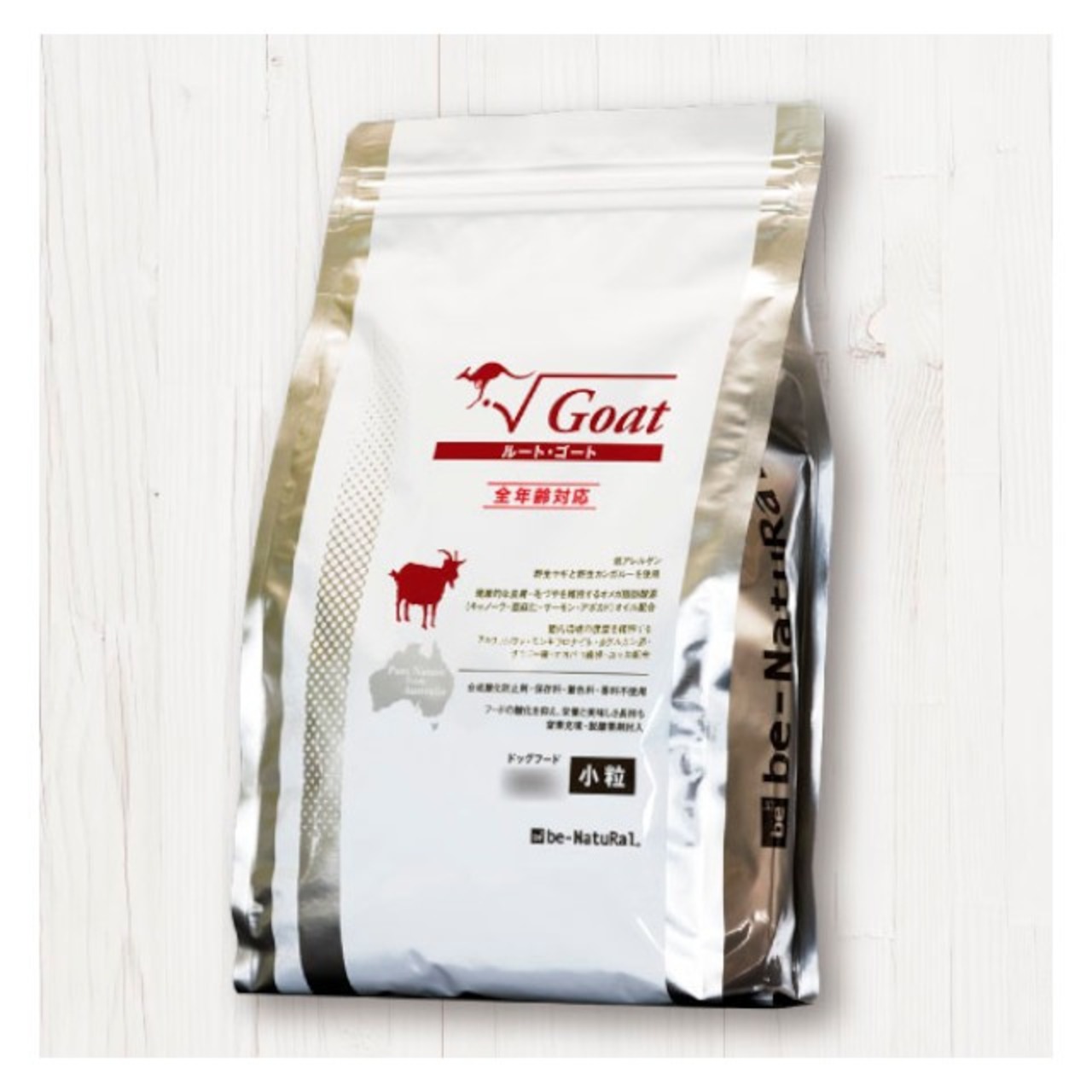 肉類(ヤギ、カンガルー*、ラム)、全粒たかきび(ソルガム)、全粒ライムギ、パン酵母*、キャノーラ油(NON-GMO)、アルファルファ(NON-GMO)、蔗糖、サーモンオイル、モンモリロナイト、亜麻仁油、チコリー根(フラクトオリゴ糖)、L-スレオニン、オオバコ繊維、ユッカ抽出物、パン酵母抽出物、DL-メチオニン、タウリン、アボカドオイル、L-トリプトファン、酸化防止剤(ミックストコフェロール、ローズマリー抽出物)、ビタミン類(A、D、B1、B2、B3、パントテン酸、B6、葉酸、B12、E)、ミネラル類(塩化ナトリウム、第二リン酸カルシウム、塩化カリウム、硫酸銅、ヨウ化カリウム、硫酸第一鉄、酸化マンガン、硫酸亜鉛、セレン)*酵素で加水分解