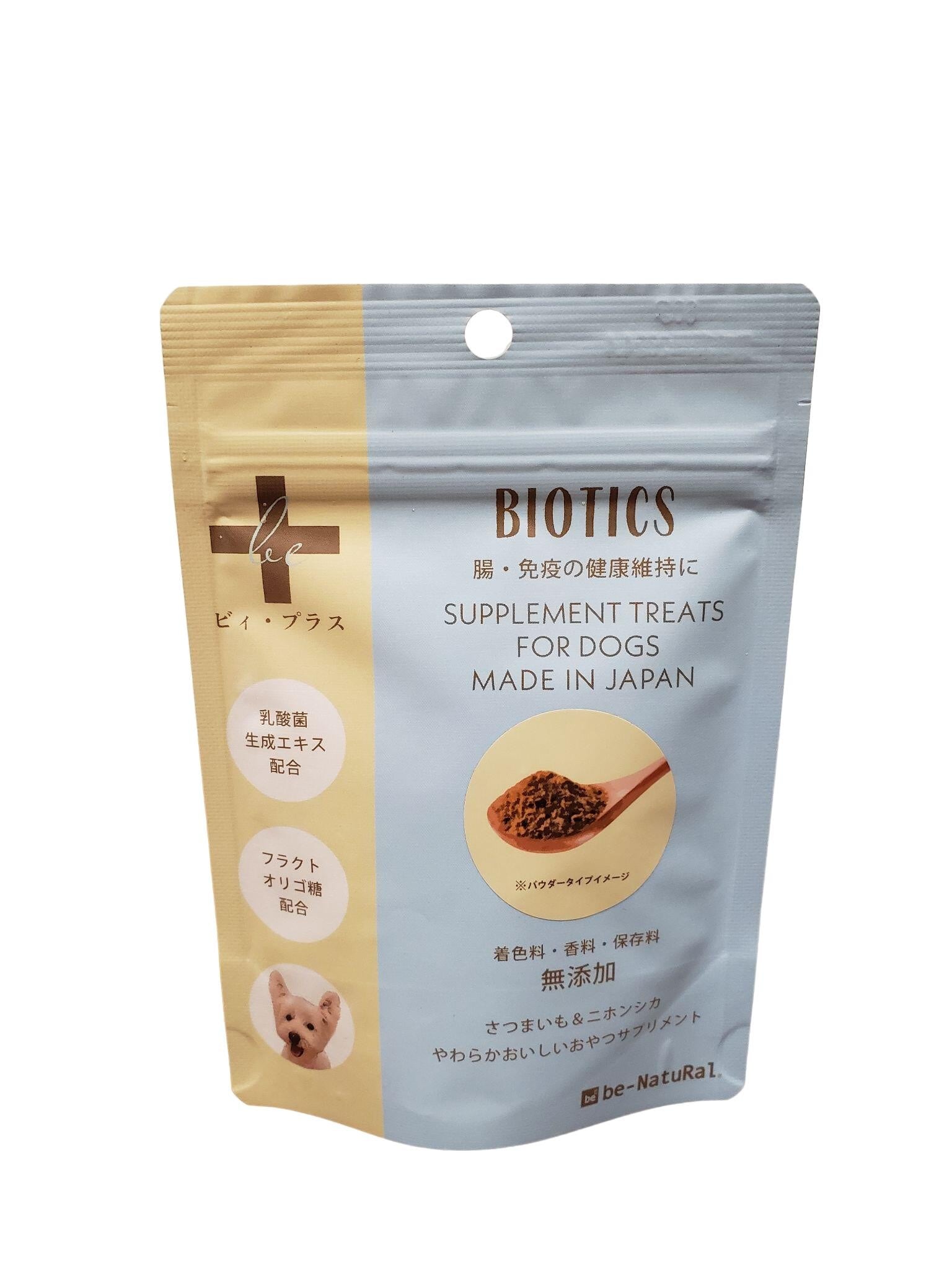 従来の半生タイプ(水分値10%以上)のペットフードやおやつのほとんどには合成保存料が使用されていますが、「ビィ・プラス」は合成保存料を一切使用しない、画期的な半生タイプのおやつです。